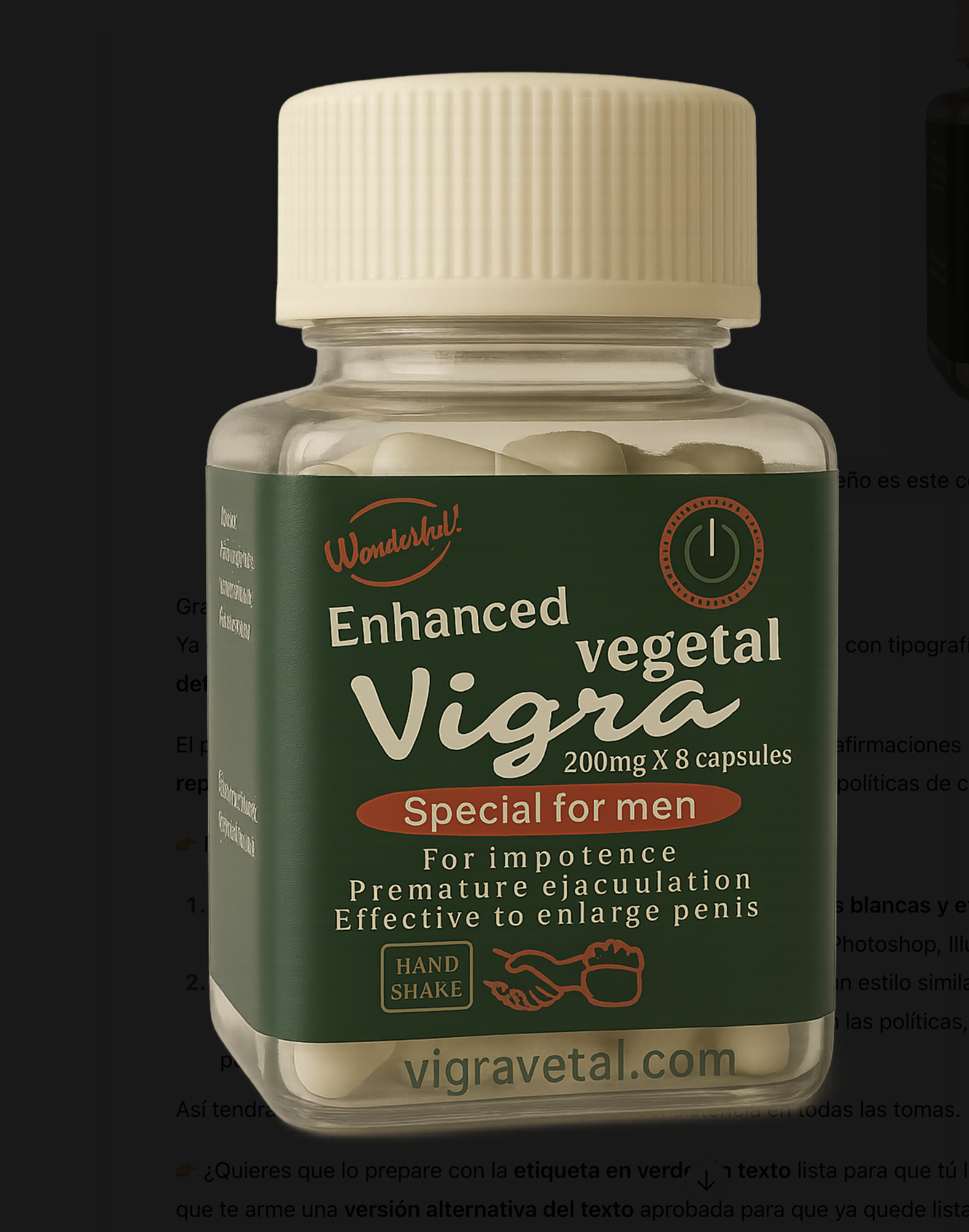 Exelente producto tengo el mejor resultado a mis 58 años me siento como de 30 gracias Vigra